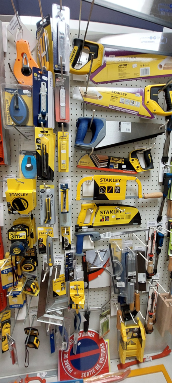 Dans celui ci, vous trouverez du matériel de bricolage, de peinture, de jardinage ainsi que de la plomberie etc...